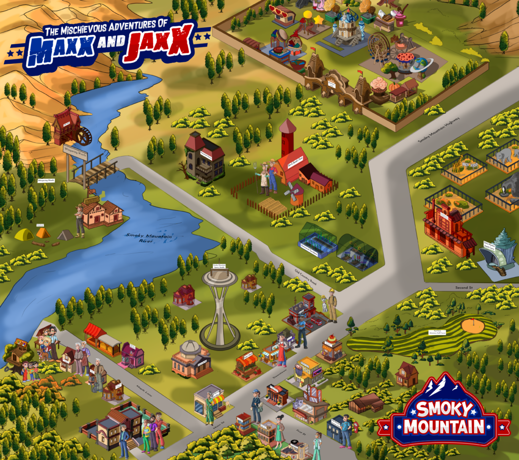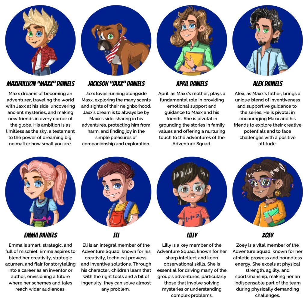 Maxx & Jaxx is more than just a book series – it’s an immersive universe designed to help children grow into their best selves. Set in a vibrant Smoky Mountain town, the series follows the adventures of young Maxx and his loyal dog Jaxx, along with a colorful cast of over 35 characters including Maxx’s family (Mom April, Dad Alex, and Sister Emma) and the Adventure Squad (friends Eli, Lilly, and Zoey).